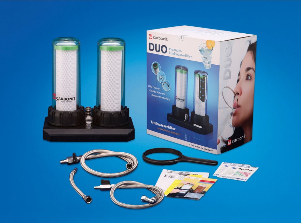 2-Patronen-Untertischgerät für serielle Wassernachbehandlung z.B. in der Küche oder im Bad. DUO Kalk wird eingesetzt, wenn zusätzlich eine Reduzierung der Wasserhärte gewünscht wird. Preis 745 €